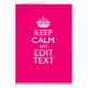 Your personalised Keep Calm saying on a fine custom hot pink accent colour style decor. A personalised Keep Calm style saying on a one of a kind gift. Humourous or whimsical try on your creative words on two editable lines of text. Remember to use CAPITAL letters for best results.