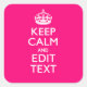 Your personalised Keep Calm saying on a fine custom hot pink accent colour style decor. A personalised Keep Calm style saying on a one of a kind gift. Humourous or whimsical try on your creative words on two editable lines of text. Remember to use CAPITAL letters for best results.
