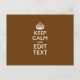 Your personalised Keep Calm saying on a fine custom brown accent colour decor. A personalised Keep Calm style saying on a one of a kind gift. Humourous or whimsical try on your creative words on two editable lines of text. Remember to use CAPITAL letters for best results.