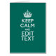 Your festive personalised Keep Calm saying on a fine custom style teal turquoise accent decor gift. A personalised Keep Calm style saying. Humourous or whimsical try on your creative words on two editable lines of text. Remember to use CAPITAL letters for best results.