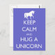 Keep Calm and Hug a Unicorn with unicorn mythical creature design. A parody of the Keep Calm and Carry On posters.