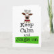 Super trendy "Keep Calm and Jingle On" fun Christmas card with a reindeer fingerprint doodle wearing a red collar with golden bells hanging from it.