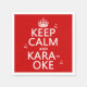 This reads Keep Calm and Kara Oke, in the style of the classic keep calm poster. It's a word play on the traditional wording and always raises a smile. There are small musical notes floating beside the letters. It's a beautiful design, popular with everyone who loves karaoke, and singing.