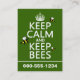 This reads Keep Calm and Keep Bees. Cartoon bees buzz alongside the words. It's a beautiful design, really popular with anyone interested in beekeeping and bee conservation.