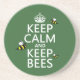 This reads Keep Calm and Keep Bees. Cartoon bees buzz alongside the words. It's a beautiful design, really popular with anyone interested in beekeeping and bee conservation.