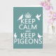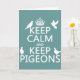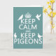 The design reads Keep Calm and Keep Pigeons, in the style of the classic poster. There are pigeons fluttering around the words. It's a beautiful design, and makes perfect gifts for everyone who loves and keeps pigeons.