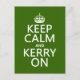 This reads Keep Calm and Kerry On, in the style of the classic keep calm poster. It makes a range of different and fun gifts for that special Kerry in your life, perfect for birthdays and christmas presents with that personal touch. It's also popular for bachelorette and hen parties.