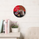 KEEP CALM AND KITTY ON ,RED TARTAN TEA PARTY LARGE CLOCK