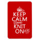 This reads Keep Calm and Knit On, in the style of the classic keep calm poster. There are balls of yarn and knitting needles nestling among the words. It's a beautiful design, which will please anyone who loves to knit. It makes a great range of presents for knitters, and home furnishings for crafting / sewing rooms.