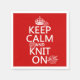 This reads Keep Calm and Knit On, in the style of the classic keep calm poster. There are balls of yarn and knitting needles nestling among the words. It's a beautiful design, which will please anyone who loves to knit. It makes a great range of presents for knitters, and home furnishings for crafting / sewing rooms.