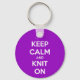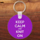 Keep Calm and Knit On Fuschia Key Ring