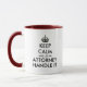 Keep calm and let a law attorney handle it funny coffee mug gift. Create your own humourous Keep Calm and Carry On quote. Modern typography template with crown. Fun personalised cups for home or office. Add your own custom text. Special Birthday or Christmas gift idea for advocate, attorney-at-law, counsel, counsellor, lawyer, legal advisor, barrister, solicitor, notary, boss, friends, family, coworker, colleague, staff, employees, corporate workers, personnel, professional, expert etc. Red coloured handle and inside. Double sided print. Office humour presents for him or her.