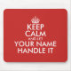 Keep calm and let handle it custom mouse pad. Add your own name. Vintage keep calm and carry on typography template with crown. Fun KeepCalm mousepad with personalizable quote or saying. Cute Holiday or Birthday gift idea for men and women. Customise background colours ie red. Create your own funny KeepCalmandCarryOn parody computer accessories. Simply edit the text of this template to make a unique design. Personalised mugs are a great gift idea for friends and family. Humourous drinkware. Make one for dad, mum, father, mother, brother, sister, uncle, aunt, grandpa, grandma, company boss, friend, colleague, coworker, employee, office worker etc.