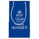 Keep calm and let handle it funny blue gift bag