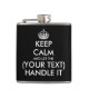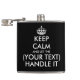 Keep calm and let ... handle it funny custom drink Flask. Make your own humourous keep calm and carry on parody. Fun Birthday, retirement or Christmas gift idea for men. Modern typography with crown. Black or custom colour. Drinking humour presents for guys.