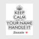 Keep calm and let (name) handle it vinyl stickers. Personalised template with crown. Create your own your funny meme. Available in small and large sizes. Cool cut-out stickers for gifts, products, objects, decorations, laptop computer, tablet, water bottle, phone and more. Modern typography template. Fun Birthday gift ideas for him or her. Black or custom colour.