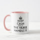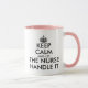 Keep calm and let the nurse handle it coffee mug. Make your own funny Keep Calm and Carry On parody for RN nurses, nurses week, nursing school graduation and more. Modern typography template with crown. Double sided print. Nursing humour. Combo colour cup with pink handle and inside. Custom design with text and crown in any colour.