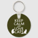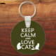 This is the classic "Keep Calm and Carry On" war poster, reworded to "Keep Calm and Love Cats". It's written in white on coloured background, and is accompanied by silhouettes of cats sitting near the words.