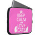 This is the classic "Keep Calm and Carry On" war poster, reworded to "Keep Calm and Love Cats". It's written in white on coloured background, and is accompanied by silhouettes of cats sitting near the words.