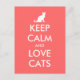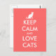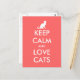 Keep calm and love cats postcard | Coral pink or custom colour. Personalizable keepcalm text design. Pet animal design.