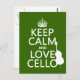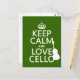 This reads Keep Calm and Love Cello, in the style of the classic keep calm poster. The silhouette of a cello rests against the words. It's a beautiful simple design, perfect for anyone who loves the cello.
