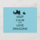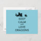 Keep Calm and Love Dragons Unique Print on Blue Postcard