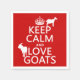 The design reads 'Keep Calm and Love Goats'. Two goat silhouettes stand on the letters. It's a beautiful design, great for anyone who works with goats, keeps goats, or just loves goats.