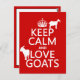 The design reads 'Keep Calm and Love Goats'. Two goat silhouettes stand on the letters. It's a beautiful design, great for anyone who works with goats, keeps goats, or just loves goats.