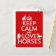 The design reads Keep Calm and Love Horses, in the style of the classic keep calm poster. There are silhouettes of horses running on and beside the words, giving a great sense of movement. It's a beautiful happy design, which is loved by horse lovers of all ages. It makes a beautiful range of products, perfect as gifts and thank yous to stable owners, riding teachers and anyone who loves horses.