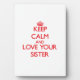 Use the search tool at my store to find other Sister merchandise. Keep Calm and Love your Sister products available on tshirts,sweatshirts,kids shirts, infant onsies, stickers, magnets, and much more Sister clothing fully customisable to your specifications. If you like what you see, please link to my store (www.zazzle.com/familygiftshirts) or email a friend.