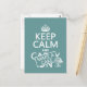 This reads Keep Calm and Make a Cake, in the style of the classic keep calm poster. The final words have been added as though on a sticker or a stamp over the original. There is a grand looking cake standing by the words. It's a fun and beautiful design, with a sense of decadence. Perfect for any tea room or bakery, and a lovely gift for anyone who loves cake.