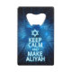 Glowing blue and white text reading "KEEP CALM AND MAKE ALIYAH." The national flag of Israel appears on the reverse side.