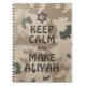 Text reading "KEEP CALM AND MAKE ALIYAH" superimposed on a desert camouflage background.