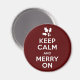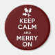 Keep Calm and Merry On! A festive seasonal holiday twist on the now-famous internet meme, based on a British World War II poster that was never released, then rediscovered (and made famous) in the year 2000.