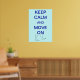 Keep Calm and Move On with outline drawing of two feet walking, is printed on light blue posters. The background colour can be customised.