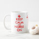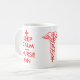 Keep calm and nurse on mug with caduceus symbol. Create your own keep calm and carry on parody. Customise background colours and text the way you want it.