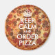 A photo of a pepperoni, sausage and cheese pizza fresh from the oven. This magnet is intended to hold up the menu so that you can order from your favourite pizza delivery service. You can customise the text to create your own "Keep Calm and Carry On" parody. If you need to change the font size, I suggest selecting the crown and all the font areas before reducing or enlarging the design as a whole.