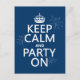 Keep Calm and Party On - all colours Postcard