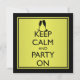 KEEP CALM AND PARTY ON with champagne glasses. Design based on the 1939 British morale poster "Keep Calm and Carry On".