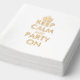 Keep calm and party on exclusive custom gold Foil Napkins. Fancy napkins for New Year event, Birthday party celebration, aniversary, wedding reception etc. Silver and bronze foil available too. Modern typography with princess crown.