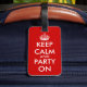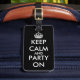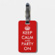 Keep calm and party on luggage tag | Customisable. Create your own funny Keep calm and carry on parody. Background colour and text can be changed. Other examples: Rock on or sing on.