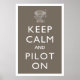 Fantasy dirigible encourages everyone to "Keep Calm and Pilot On" in this fun twist on the popular British poster from World War 2. Originally in red and white, this version takes a more neutral turn in slate grey and white.
