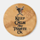Parody of the popular keep calm and carry on quotation, but for Pirates! Keep Calm And Pirate On. Pirate Skull and crossed swords with a vintage pirate map of the Florida Keys background.