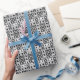 Black and White Keep Calm and Play Chess Pattern Wrapping Paper. A stylish chess pattern with king, queen, rook, knight, bishop and pawn chess icons on a chessboard squares pattern with funny fully customisable text slogan "Keep Calm and Play Chess" wrapping paper for your exclusive gifts. This cool, nerdy and very special chess paper gift wrap is fully customisable, add your texts and images!