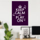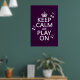 This reads Keep Calm and Play On, in the style of the classic keep calm poster. There are music notes floating by the letters. It's a popular design, perfect as gifts for musicians and music teachers.