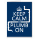 This reads Keep Calm and Plumb On, in the style of the classic keep calm poster. There is a pipe ringing from the top of the poster to the bottom. It's a really run different design, perfect for all plumbers and plumbing companies. Great promotional items, or gifts for those who love to plumb.