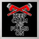 Plumber Humour with the Internet meme "keep Calm". Crossed plumbing pipe wrenches and the slogan "Keep Calm and Plumb On"