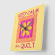 Show off your love of quilting with this fun and colourful quilt block proclaiming "Keep Calm and Quilt". This design is original quilt art with a colourful appliqué flower patchwork block. The word "quilt" is easy to change to another word of your choice. The quilt design is in vibrant and dynamic colours of orange, yellow and pink for a beautiful colour palette. Fully customisable to personalise. Quilt art is original art from fabric and quilt designer Phyllis Dobbs. This art is available on other products and in several colour backgrounds and is also available on more Keep Calm products with different quilt art. More products are available in Phyllis' BusinessWithFlair store.