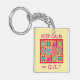 Show off your love of quilting with this fun and colourful quilt block keychain proclaiming "Keep Calm and Quilt" on a yellow background. This design is original quilt art and favourite patchwork quilt blocks plus unique blocks including log cabin, pinwheel, star, and square in a square blocks. The word "quilt" is easy to change to another word of your choice. The quilt design is in vibrant and dynamic colours of orange, yellow, pink, turquoise, and lime green for a beautiful colour palette. Fully customisable to personalise. Quilt art is original art from fabric and quilt designer Phyllis Dobbs. This art is available on other products and in several colour backgrounds and is also available on more Keep Calm products with different quilt art. More products are available in Phyllis' BusinessWithFlair store.