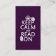 This reads Keep Calm and Read On, in the style of the classic keep calm poster. There are piles of books beside and on the words. This is a really popular design in my store, perfect for everyone who loves to read. It makes a great range of gifts for book lovers, readers and writers.